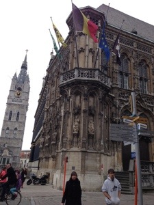 Ghent is smaller city just northwest of Brussels but has a remarkable history and extremely friendly people. None of us, including Dr. Morris knew much about the city so we were flying by the seat of our pants. Naturally since this is Europe, the first thing that struck our senses was the view we had from our drop off point within the city: