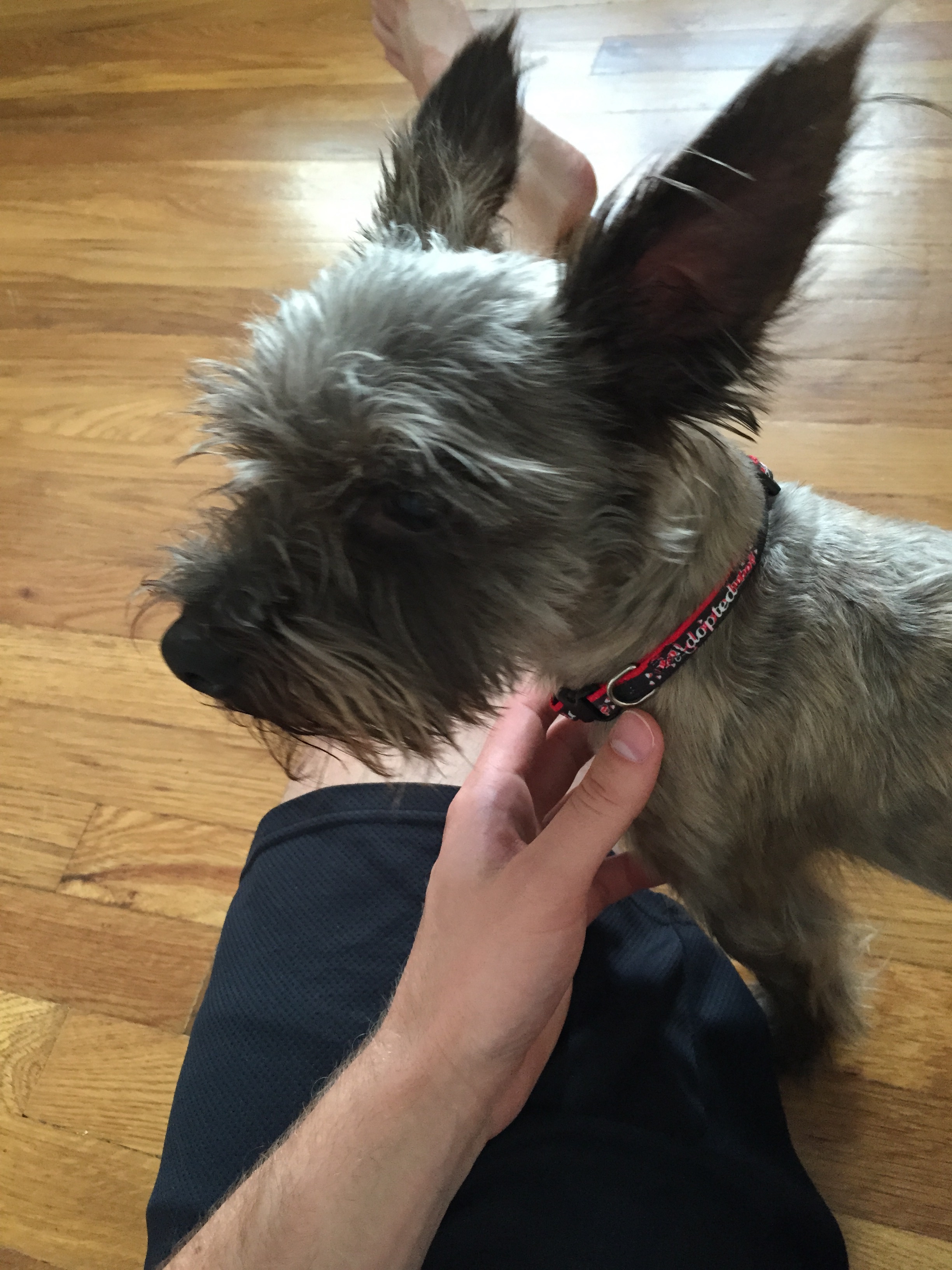 We don’t know exactly what type of dog he is, but we do know that he is a melting pot of breeds. We’ve had him for about a week now and have already found Schnauzer and some sort of terrier just dying to come out. It seems that everybody that meets him finds him absolutely adorable. I’m pretty sure the ears are what take the cake.