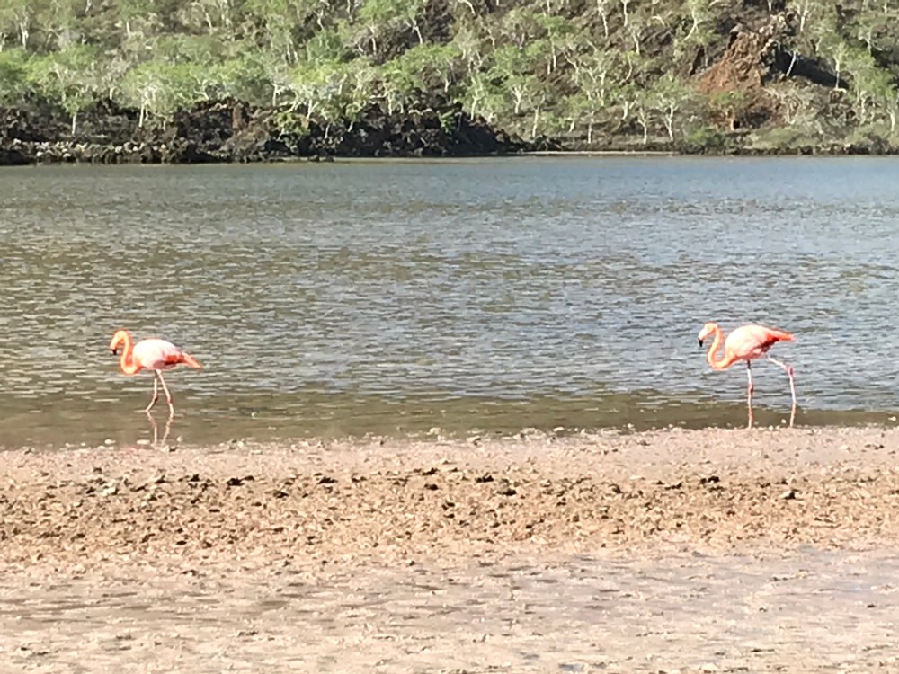 Our morning hike started on the northern side of Floreana, where we encountered a wonderful lake where bright pink flamingos were busy feeding and making their nests.